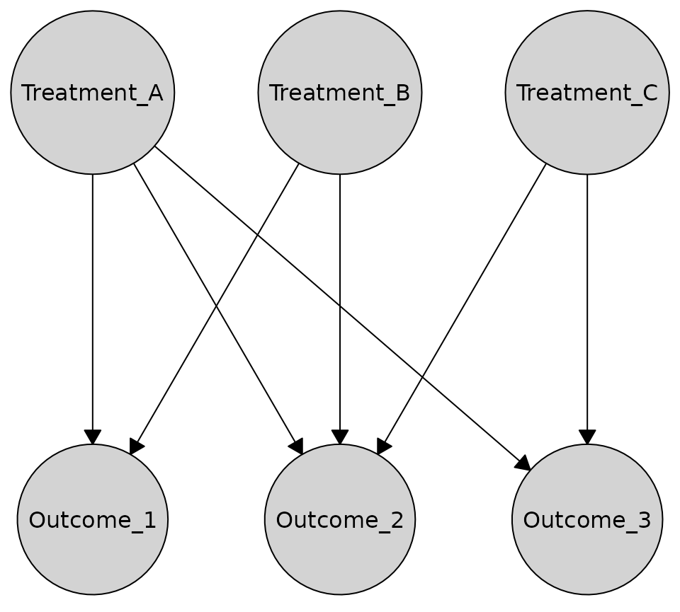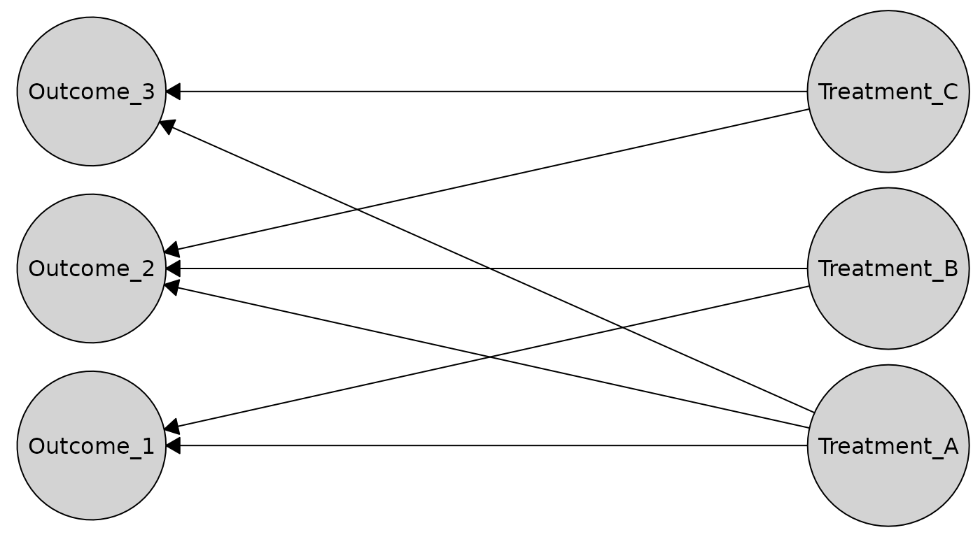 Here’s an example bipartite causal graph with treatments and outcomes: