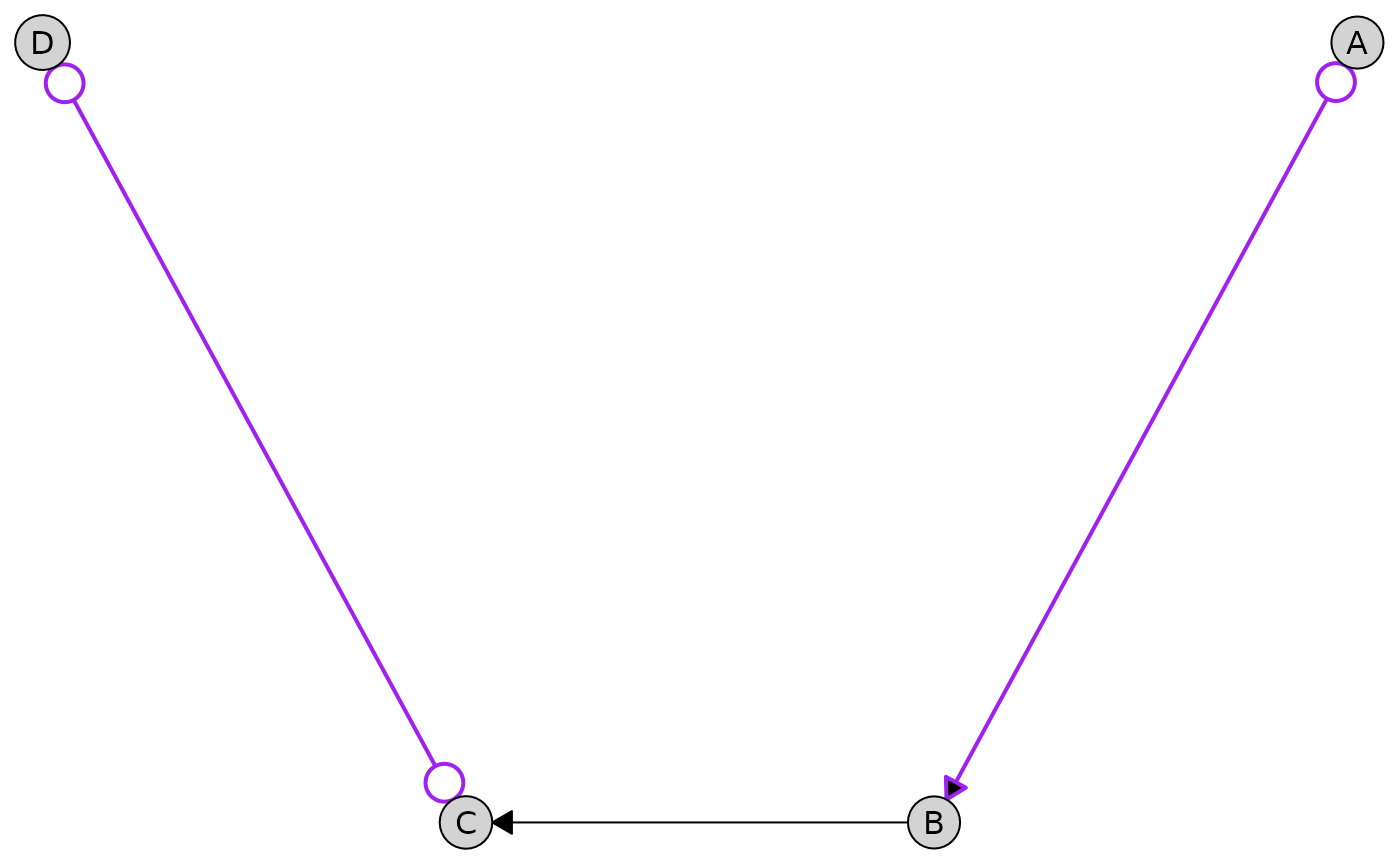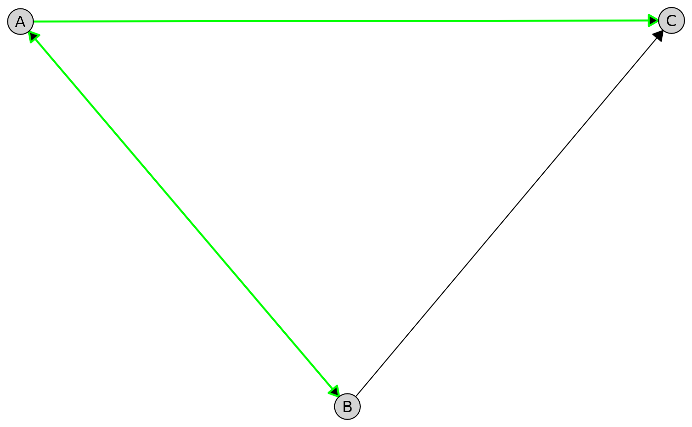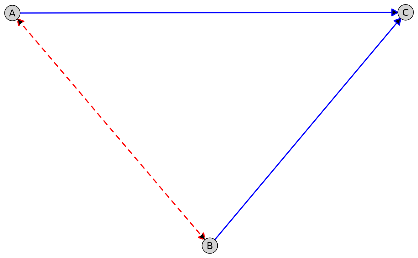 A %<->% B, # Bidirected edge (latent confounder)