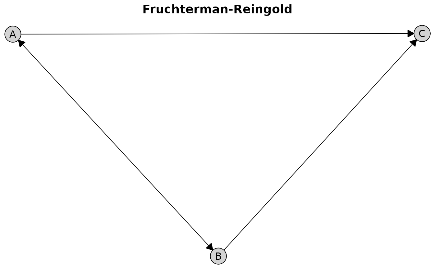 plot(admg, layout = "fruchterman-reingold", main = "Fruchterman-Reingold")