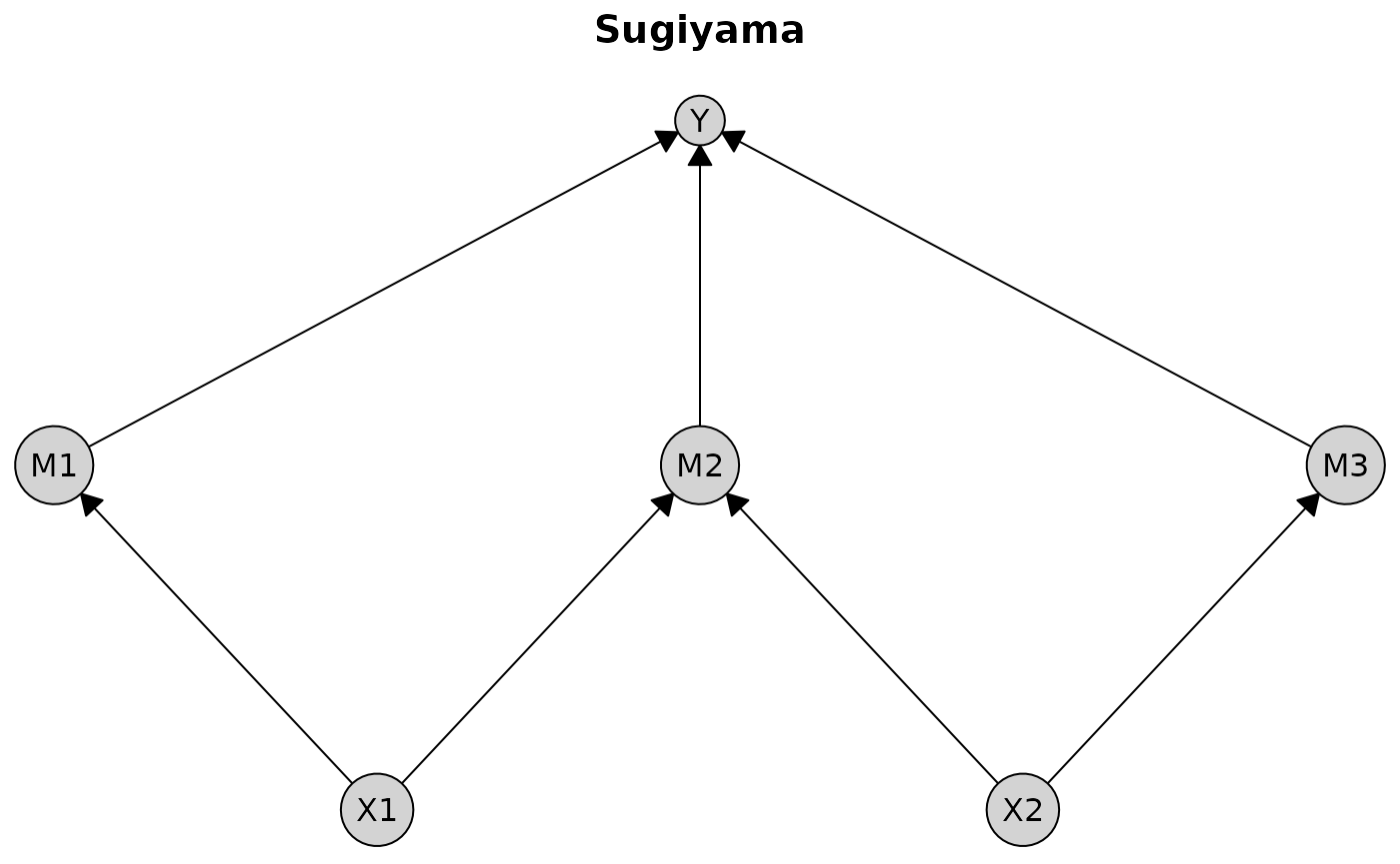 plot(dag, layout = "sugiyama", main = "Sugiyama")