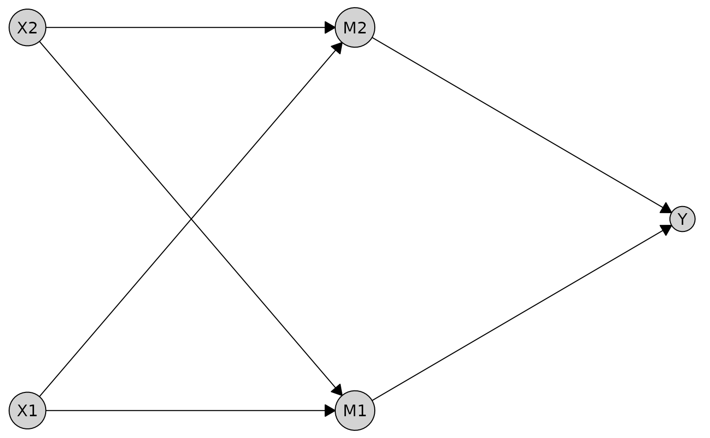 name = c("X1", "X2", "M1", "M2", "Y"),